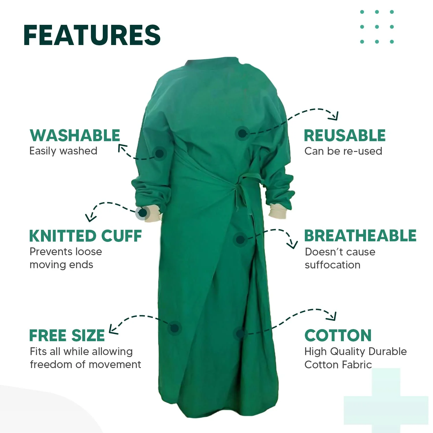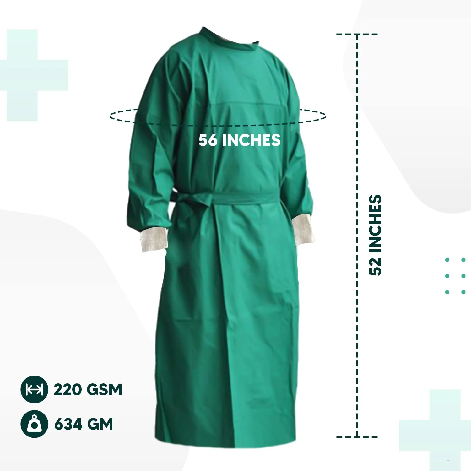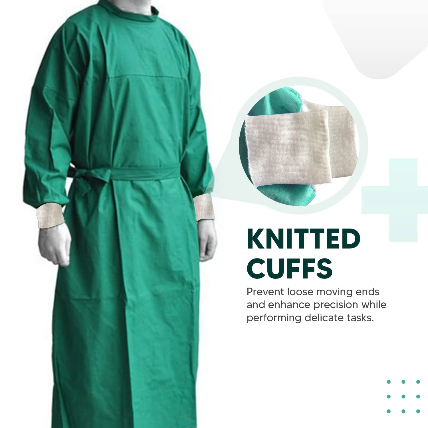 Featuring full-length coverage, adjustable back ties, and elastic cuffs, this gown delivers a secure fit and hygienic barrier, making it the preferred choice for hospitals, clinics, and operation theaters.